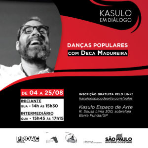 Em agosto o Kasulo Espaço de Arte oferece gratuitamente uma oficina presencial de danças populares, com Deca Madureira.